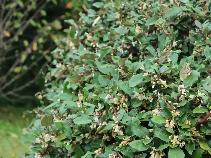 Durante el otoño, produce discretas flores blancas con un aroma dulce y agradable, seguidas en invierno por pequeños frutos rojizos. Es perfecto para formar setos densos, pantallas naturales, o como ejemplar aislado en jardines y terrazas.